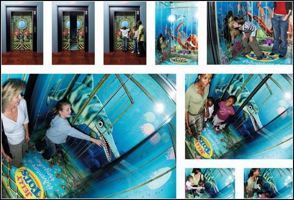 А такой лифт понравится, в первую очередь, маленьким посетителям торговых центров. Подводный мир, морские жители, стайки рыб, кораллы и морские звезды... А все вместе это реклама желейных конфет Jelly Tots от южноафриканских криэйторов Tbwa\Hunt\Lascaris.