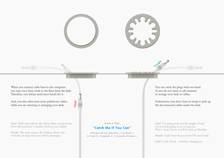 Это кольцо может быть вмонтировано в стол с любой поверхностью, как деревянной, так и пластмассовой. В нем есть специальные выемки разного диаметра для самых различных проводов. В них вы можете вставить и кабели от телефона, и компьютера, и зарядного устройства для мобильного или фотоаппарата… В общем, все провода, которые вам мешают.