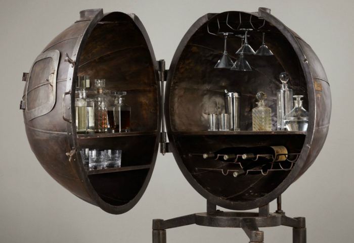 Эта железная ёмкость, выпущенная в начале прошлого века, была найдена на одном из заводов Германии. Умельцы изготовили из железного шара стильный бар с удобным доступом к бутылкам. Такой бар прекрасно впишется, например, в интерьер рабочего кабинета.