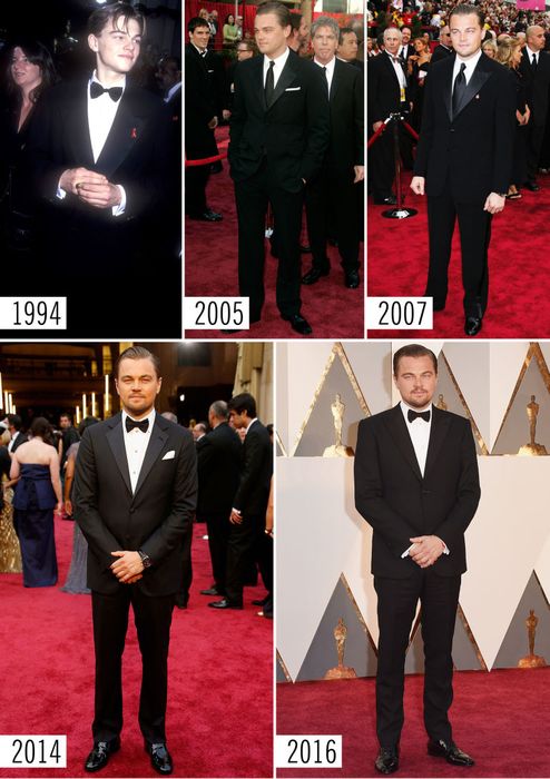 Самым постоянным в своём выборе является Леонардо Ди Каприо (Leonardo DiCaprio). Он всегда появляется на красной дорожке в чёрном смокинге классического кроя и в лакированных туфлях. Единственное, что меняется в его образе – это присутствие или отсутствие бороды. Ещё иногда Леонардо надевает вместо галстука бабочку и делает другую причёску.