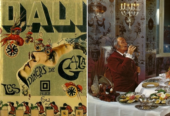 Обложка кулинарной книги Les Diners de Gala и её автор Сальвадор Дали.