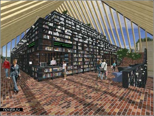 Ну и, как водится, не только чтением будут заняты посетители "Книжной горы" (Book Mountain). Поскольку, помимо читальных залов, в библиотеке найдется место и для коммерческих зон, офисов, учебных аудиторий, конференционных и выставочных залов. А чтобы сохранить идею "горы", все эти и другие помещения будут расположены на выстроенных по спирали кирпичных терассах, в центре которых и разместится библиотечный фонд.