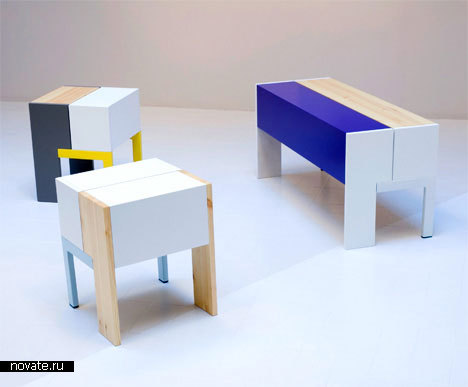 И его нашел дизайнер Daniel Enoksson. Чтобы не изобретать велосипед, он решил создать предметы своей мебели и из дерева, и металла одновременно! Дизайнер предпочел использовать древесину сосны, МДФ и сталь. И получились такие вот интересные табуретки, скамейки, стулья. Стиль вышел экстраординарный, необычный, но очень яркий и запоминающийся.