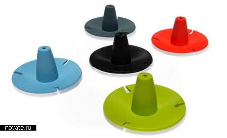 И дизайнер Andrea Ruggiero пошел дальше всех и предложил сделать его не только простым в использовании, но еще и незаметным! Его приспособление «Сомбреро», получившее такое название из-за своей формы, прячется под стол. Крепится оно там без какого-либо вреда для столешницы, в специальные выемки вставляются провода и больше вас не беспокоят. И хотя эту «шляпку» мы почти не видим, цветов есть сразу несколько.