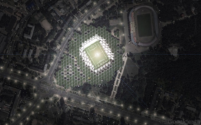 Немецкое бюро Stadiumconcept и голландская студия IAA Architecten специализируются на постройке спортивных комплексов по всему миру. Для футбольного чемпионата, который будет проходить в Белоруссии в 2020 году, архитекторы предложили новейший проект стадиона, для функционирования которого будет использоваться энергия, получаемая из природных источников (солнца, воздуха и воды).