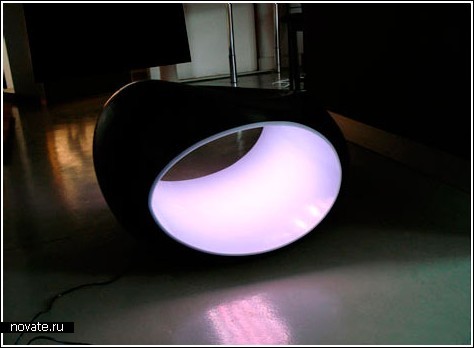 Но это все технические стороны, которые нас не слишком интересуют. Разве что важно сказать, что материал, из которого сделано кресло, – Corian®. Куда интересней то, что кресло может светиться за счет светодиодов. Только не само кресло, а поверхность в этой самой «дырке», которая нас так поразила поначалу. И доступно сразу шестнадцать цветов подсветки, и вы можете выбрать любой! Тут уже зависит от интерьера. Как бы то ни было, вы можете использовать эту мебель не только в качестве кресла, но и ночника, и стола, и даже просто произведения искусства у вас дома. Ведь выглядит эта вещь очень необычно.