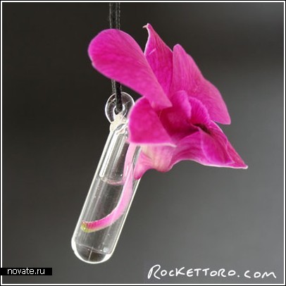 Реально ли носить у себя на шее настоящий цветок? Оказывается, да, если есть специальная для этого вазочка. Совсем крошечная, но способная вместить росток с бутоном. Стоит отметить, что смотрится это чудо действительно очень нежно. К сожалению, не сообщается, сколько сможет продержаться цветок в этой вазе, но ведь это еще и преимущество ваше. Сегодня вы «надели» один цветок к одному наряду, завтра – выбросили засохший и вставили цветок другого растения.