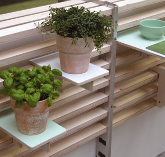 предлагает в таком случае в теплое время года совместить приятное с приятным и установить на балконе специальную панель. К ней прилагаются модули для сидений, столиков и полочек для растений, домашних животных или еще чего-нибудь. Они легко ставятся и снимаются, а также их можно опустить вниз на время.
