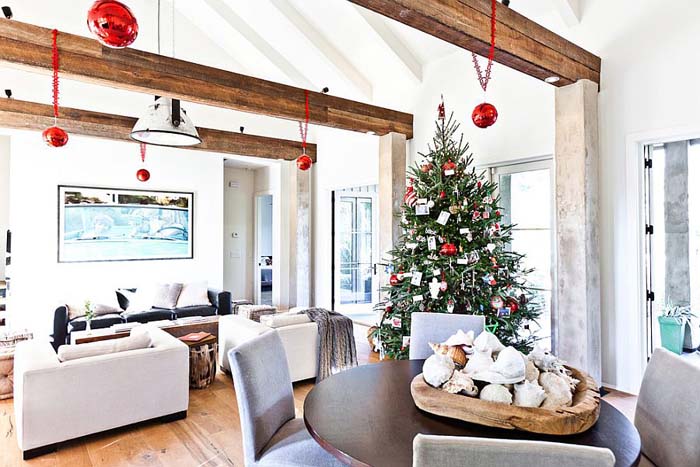 Один из самых легких и лучших способов решить проблему непривлекательности комнаты с высокими потолками – использовать в декоре деревянные балки, которые уменьшат размеры комнаты по высоте и уравновесят пропорции. Это очень модный прием, в последние годы даже окрашенные балки используют в декоре самых роскошных интерьеров.