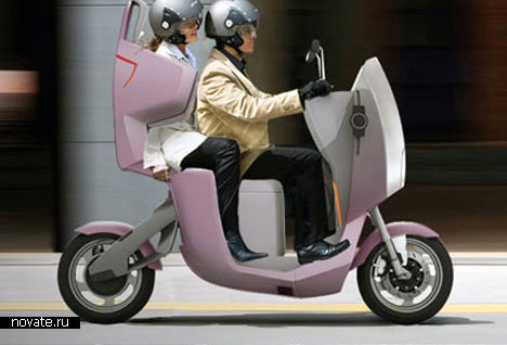 Имя этого скутера - XO Move. Устроен он довольно интересно. Если на обычном скутере мог поместиться лишь один человек, то тут есть место для двоих! Хотя в размерах он ни на сантиметр не превышает стандартные скутеры, а даже миниатюрнее. По крайней мере, выглядит так, ведь фактических размеров мы пока не знаем. Причем второму пассажиру вполне удобно сидеть, он не ютится сзади, как бедный родственник.