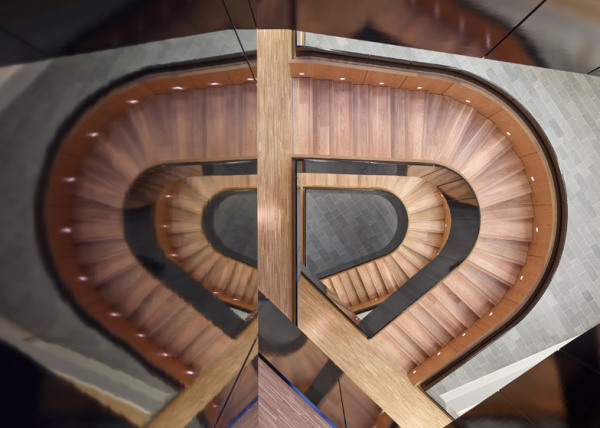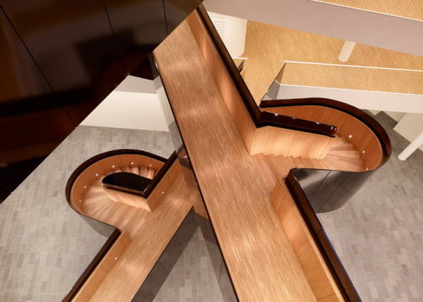 Центральная скульптурная лестница поощряет к эффективной циркуляции и активному взаимодействию сотрудников офиса, задачей которых, в свою очередь, является содействие позитивного диалога между народами и странами.