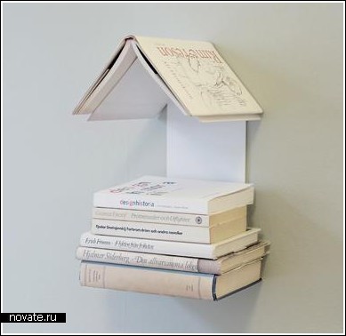 Первая полка, о которой рассказывает портал , была создана компанией . Она очень похожа на скворечник, не находите? Не зря имя она получила – «Гнездо читателей». Конечно, на такую полку вряд ли поместится много книг. Парочку можно положить на саму полку, а еще одну – наверх, туда, где крыша предполагаемого скворечника. Все задумано было специально, чтобы кладя книжку на крышу, вам не требовалась закладка – так вы точно не забудете, на какой страничке остановили чтение. Несмотря на то, что полка крайне проста, она довольно симпатична, и наверняка многим понравится.