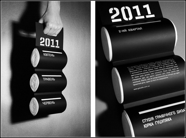 Юрко Гуцуляк и его студия графического дизайна очень любит делать разнообразные календари. В его активе уже с десяток разнообразных, довольно интересных продуктов этой направленности. А про один из них, «Сгорающий календарь», в котором ежедневно вместо листиков отрываются спички, мы уже рассказывали на нашем сайте.