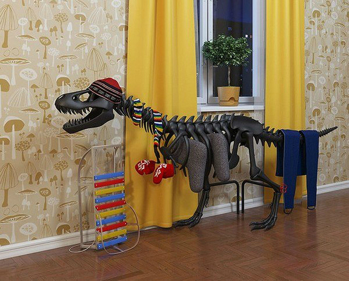 Креативная вешалка для одежды в виде скелета динозавра.