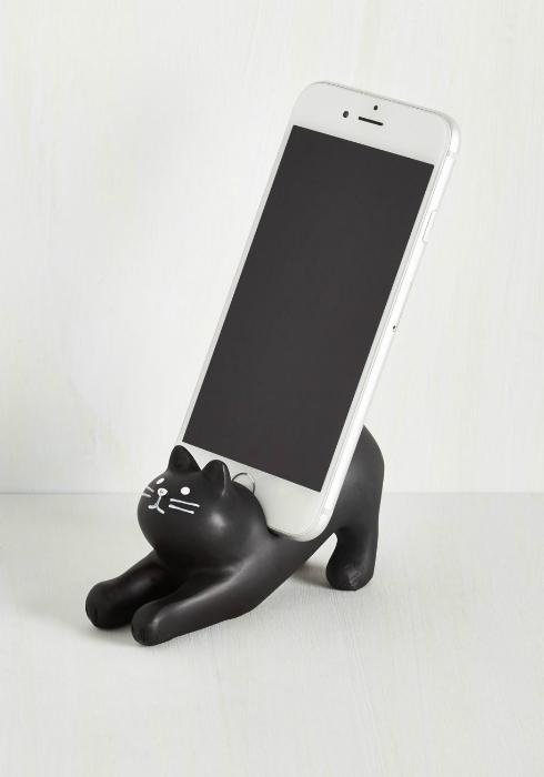 Настольная подставка для смартфона в виде симпатичного черного кота.