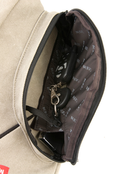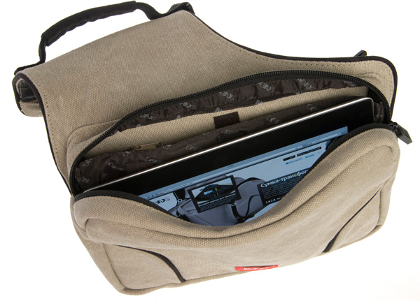 Внутрь помещается много всяких нужных и не очень вещей: от брелока до iPad - для всего имеется отдельный карман и своё место. На маленькой сумке есть карман с перегородкой, трансформирующей внутреннее пространство кармана, и карабином для ключей.