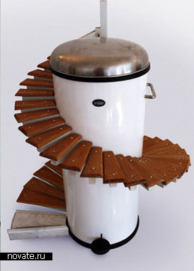 Это мусорное ведро имеет вполне себе стандартные размеры и является именно что ксилофоном. Сделан он из дуба и стали, а также в комплекте идут небольшие металлические шарики. Именно за счет них и появляется звук, а не при помощи молоточка, как мы привыкли. Тут есть и педалька, нажимая на которую, мы включаем механизм. Появляется шарик, который скатывается по лесенке, и создает музыку. То есть для того, чтобы «включить звук», нужно просто что-то выбросить в ведро. Правда, потом доставать и выкидывать в помойку мусор будет сложно, ведь тут такая конструкция сложная. Шарик бы не потерять! Хотя их специально создано несколько.