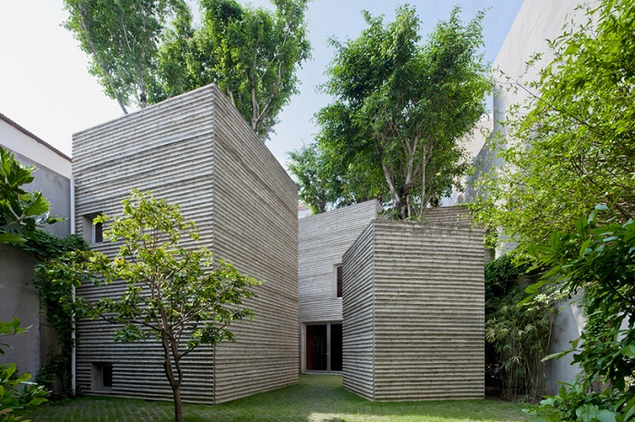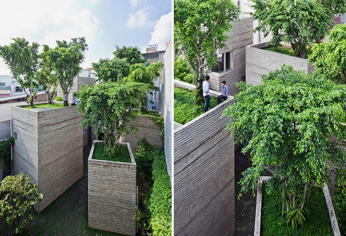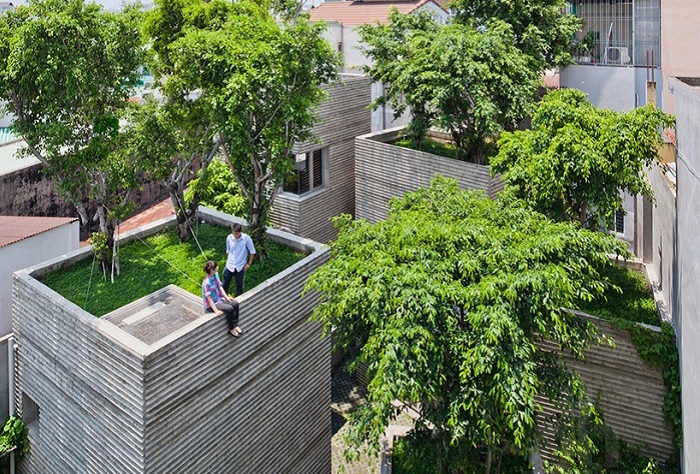 Чтобы поспособствовать озеленению мегаполиса, группа вьетнамских архитекторов студии Vo Trong Nghia Architects разработала и реализовала проект жилого комплекса, состоящего из пяти монолитных домов, с посаженными на их крышах деревьями (House for Trees).