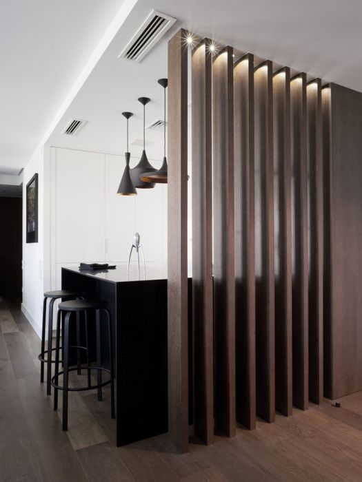 Зонирование пространства с помощью деревянной перегородки - лучшее решение для оптимизации малогабаритного пространства.