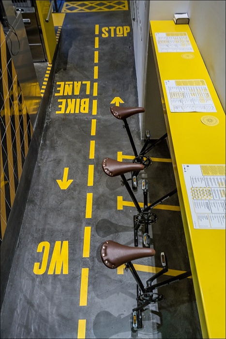 Помимо этого дизайнерам удалось грамотно зонировать небольшое пространство дополнительными шуточными указателями.