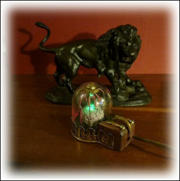 Следующая мышь для компьютера действительно уникальна: она сделана в единственном числе стимпанк-энтузиастом по прозвищу Unklian. Главная фишка мышки - оранжевый "очаг" внутри, выполненный из оранжевых светодиодов. Автор собрал ее на основе обычной оптической мыши, купленной на аукционе eBay за один пенни!