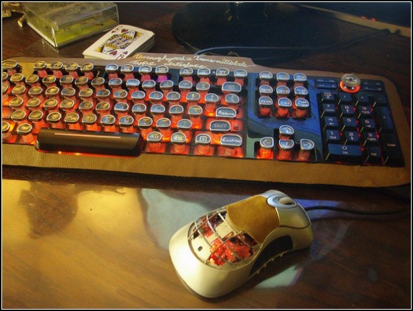 Вы наверняка уже заметили непонятные буковки на клавишах предыдущих мышей. Фотограф из Канзаса по имени Brad сделал себе целую клавиатуру из таких букв! Ну и, конечно, мышку - правда она достаточно бледно и простенько смотрится рядом с роскошной клавиатурой в стиле стимпанк.