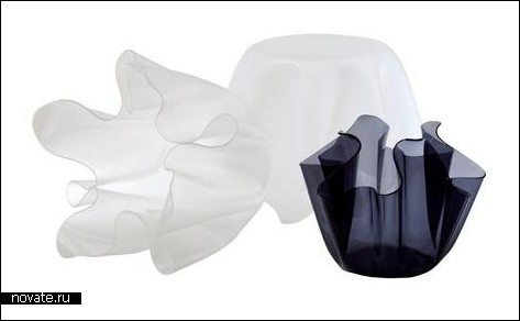 Причем несмотря на форму, стоит он на полу вполне устойчиво. Если же мы перевернем его, то получаем вполне занятную корзинку. В ней можно хранить игрушки мягкие, одежду, книги – словом, то, что поместится. Дизайнер Jane Punnopatham явно была вдохновлена какими-то цветочками, когда создавала это творение. Никак иначе это объяснить нельзя. Интересно, что стол можно сделать на заказ, и форма его будет зависеть от пожеланий заказчика. Ведь все они нагреваются и выплавляются вручную, потому можно придумать совершенно разные, неповторяющиеся формы. Мебель была специально создана для Spectrum West Collection.