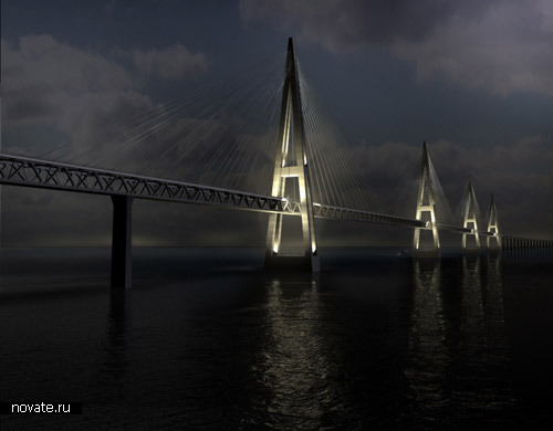 Идея о соединении Евразии с Северной Америкой возникла довольно давно – в 1890-м году Уильям Гилпин, губернатор штата Колорадо впервые высказал идею о железнодорожной паромной связи между этими континентами. С тех пор было предложено много амбициозных проектов, в том числе тоннель под Беринговым проливом и вот такой вот мост. Строительство и обслуживание моста, в виду сложных климатических условий затруднено, но возможно когда-нибудь появится мост, соединяющий мыс Дежнева на Чукотке с мысом Принца Уэльского на Камчатке. Отделяют их чуть больше 80-ти километров.