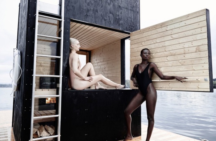 Wa_sauna - плавучая сауна на озере.