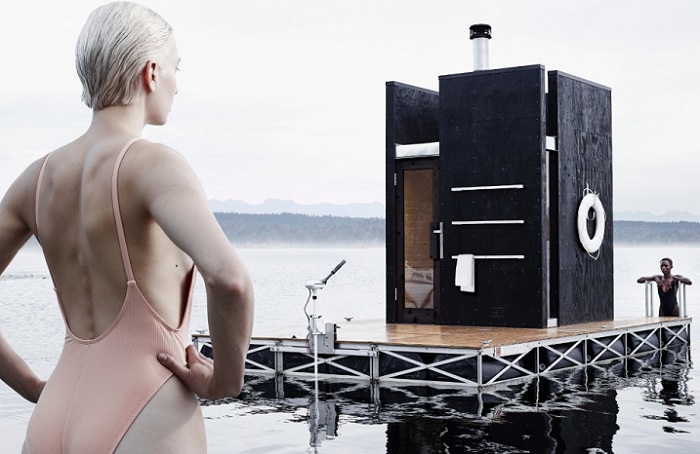 Архитекторы студии GoCstudio реализовали проект плавучей сауны Wa_sauna, расположенной на озере Lake Union в Сиэтле (США). Wa_sauna приводится в движение электродвигателем. У этой конструкции также имеется якорь, который можно использовать при необходимости зафиксировать сауну на месте.