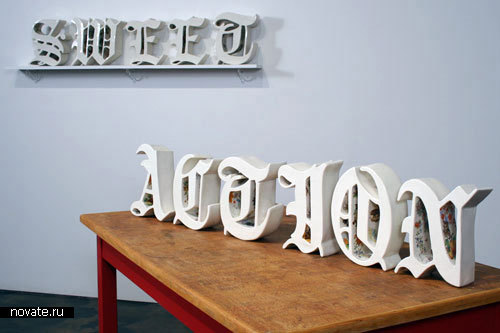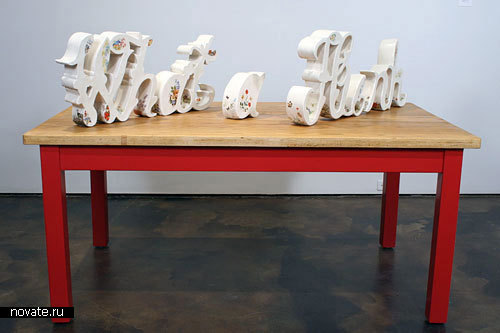 Настолько интересных работ мне еще видеть не приходилось. Притом полезностью они явно не отличаются, это просто украшение интерьера. Такие скульптуры можно поставить на полку, стол или прямо на пол только для того, чтобы украсить комнату, сделать ее более яркой. Однако, какую-то смысловую ценность они все же несут. Ведь это не просто фигурки, а самый настоящий текст.