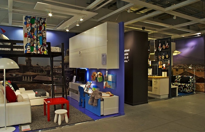 Практически все перегородки внутри салонов IKEA установлены на колесиках и могут перемещаться. Обычно колесики заблокированы, чтобы люди случайно не сдвинули перегородки.
