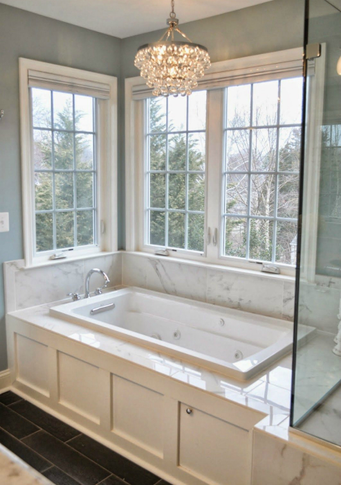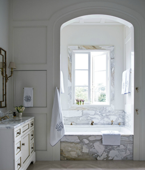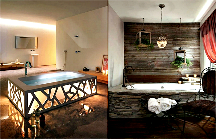 Каменный экран станет поистине роскошным украшением любой ванны.