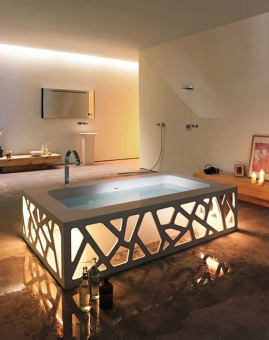 Потрясающий резной экран с подсветкой, который станет неповторимым украшением ванной.