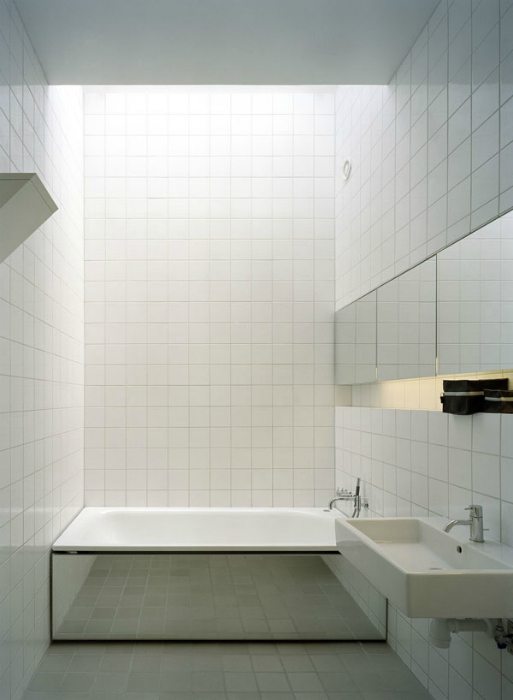 Привлекательная зеркальная конструкция под ванной позволит зрительно увеличить площадь санузла.