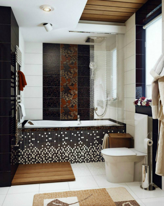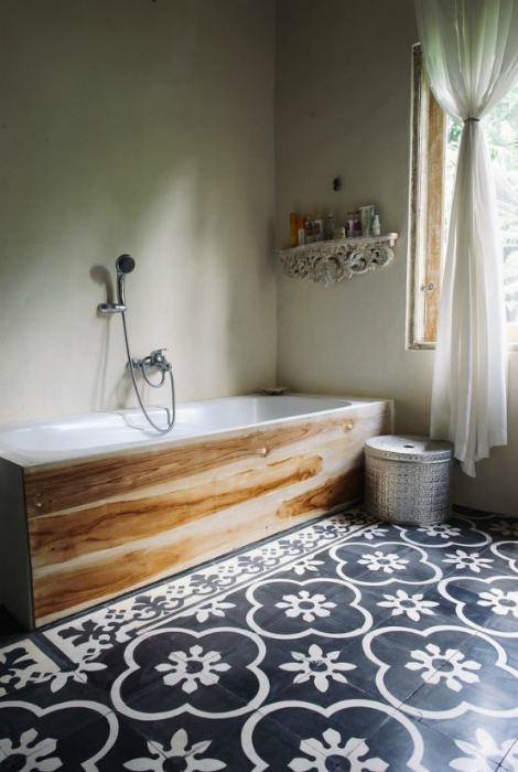 Оригинальная кафельная отделка поможет украсить любую ванну.