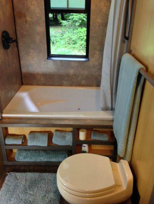 Экран с открытыми полками, который позволит хранить множество нужных вещей под ванной и станет настоящим спасением для владельцев маленьких пространств.