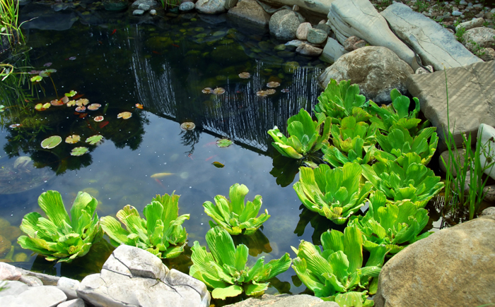 Не все растения подходят для выращивания в искусственном пруду. Во многом их выбор определяется глубиной и размером водоёма. Делятся растения на три группы: погружённые в воду, полупогружённые и плавающие на поверхности. Погружённые – это вид, который живёт под водой, у некоторых из них листья и цветы тянутся к поверхности, например, лилии. Их ещё называют оксигенераторами, поскольку они вырабатывают кислород для рыбок в пруду. У полупогружённых растений под водой находятся лишь корни. Это ирисы, лотосы, рогоз, камыш. Третий тип плавающих растений ни каким образом не привязан к почве. В искусственных водоёмах их часто используют, чтобы подавить рост водорослей.