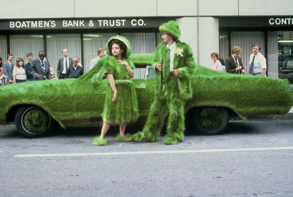Излюбленный материал бруклинского художника Джина Пула (Gene Pool) – это трава. Применяя особую технику, Джин выращивает садовый газон на костюмы, головные уборы, обувь, портфели и многое другое. Но главным своим достижением художник считает «озеленение» двух Buick LeSabres и школьного автобуса.