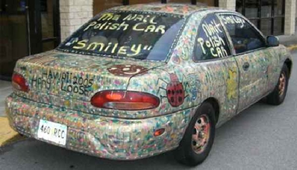 Ивон Милнер (Yvonne Millner) из Южной Каролины сочла свою Mitsubishi Mirage недостаточно женственной. В поисках лучшего решения Ивон бросила взгляд на маникюрный набор. И нарисовала на капоте смайлик. Войдя во вкус, женщина покрыла лаком для ногтей весь кузов машины. И дала ей новое – соответствующее «имиджу» – имя Smiley.