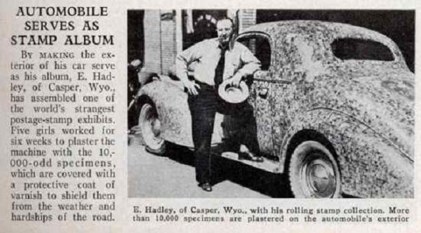И. Хэдли (E. Hadley) из Вайоминга «затюнинговал» автомобиль с помощью коллекции марок. Для наклеивания «покрытия» потребовалось пять девушек и шесть рабочих недель. А также – около ста тысяч марок, заказанных из шестидесяти стран. Для сохранности бумажного «тюнинга» Хэдли нанес поверх марок несколько слоев защитного лака.