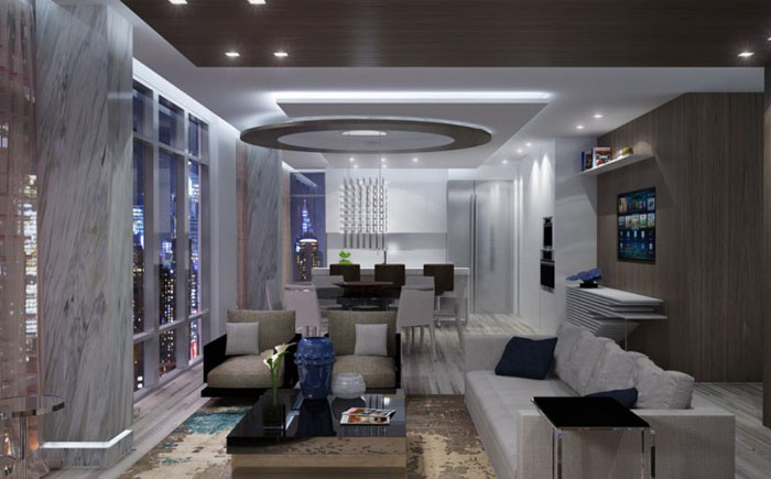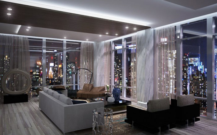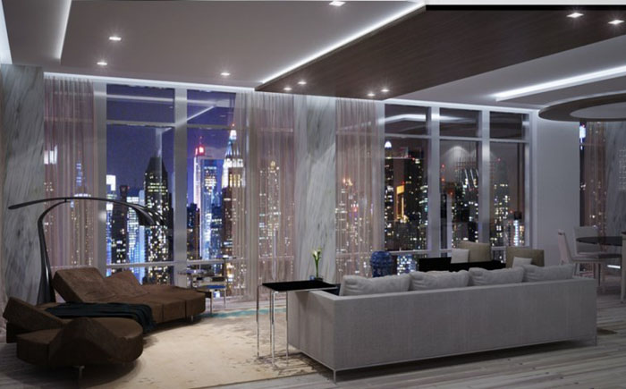 Дизайнерская компания Pepe Calderin Designs завершила проект оформления интерьера в одном из пентхаусов Нью-Йорка. Поскольку это квартира, то пространство в ней ограничено, но всё же она может похвастаться роскошной гостиной, столовой, современной кухней и огромной спальней.