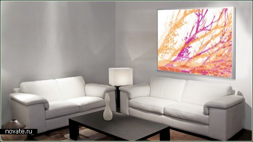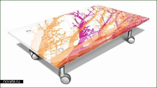 Коллекция от 2Modern состоит из нескольких разновидностей и расцветок настенных ламп-картин, и стеклянных кофейных столиков под стать. Столики, правда, в темноте не светятся, но выглядят очень симпатично, особенно в сочетании с настенной лампой.