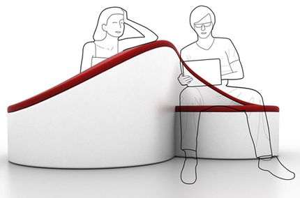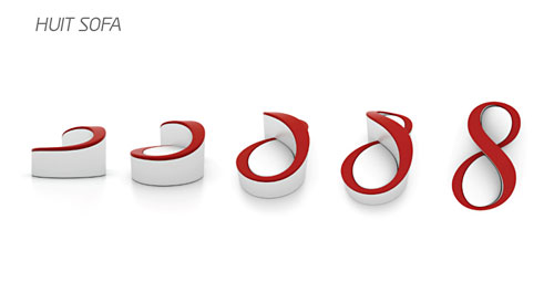 Одной из самых известных стала оригинальная софа-восьмёрка "Sofa Huit". На ней можно сидеть рядом, или сидеть «вдвоём, но раздельно», ведь высокая спинка является и своего рода барьером.