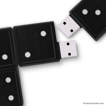 Это USB флэш-накопители, сделанные в виде домино. Это не просто стильно, но и очень легко в обращении. Каждая белая точка на фишке означает 1 Гб используемой памяти. То есть, все очень просто! Если на ней 1 точка – 1 Гб, 3 точки – 3 Гб и так далее. Мы пока не знаем, насколько это удобно и полезно в применении, но если они вас чем-то не устроят, сыграйте ими в домино.