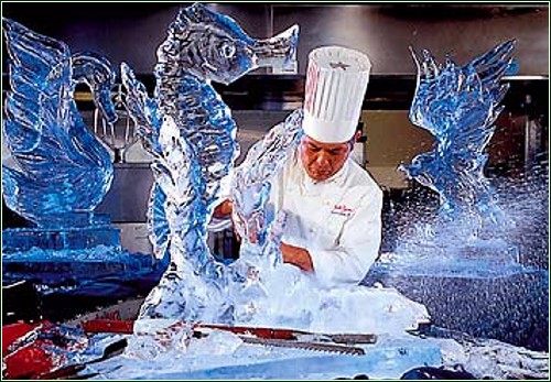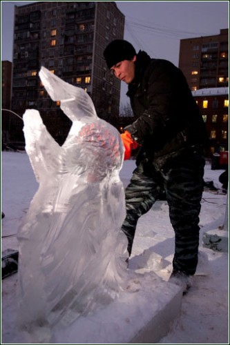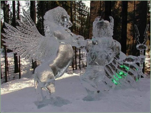 Работать со льдом намного труднее, чем с глиной, гипсом или песком. Во-первых, необходимы специфические условия и инструменты для работы, например, электропила, а во-вторых, ледовые скульптуры недолговечны, и если не хранить их в особых помещениях с темпуратурным контролем, то от ледяного козлика не только рожек да ножек не останется, но и мокрого места...