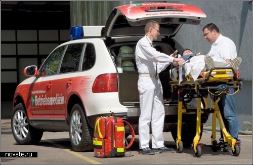 Этот Porshe Cayenne считается самым быстрым в мире автомобилем скорой помощи. Находится он на попечении города Штуттгарт, и используется как раз в тех исключительно сложных случаях, когда счет идет на доли секунды, или же для доставки в больницы города органов для трансплантации.