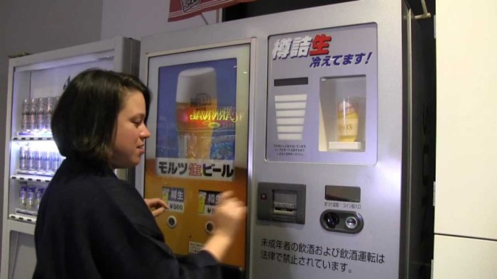 В некоторых японских автоматах продается пиво. Это связано с тем, что в Японии несовершеннолетние практически никогда не водят машину.