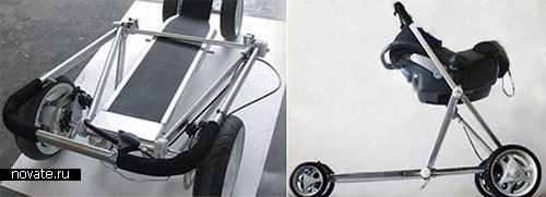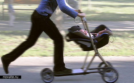 Идея лежит на поверхности – сзади у коляски имеется площадка, на которую встает молодая мама (или папа, почему бы и нет), и разгоняет транспортное средство, назовем это так. Как утверждают проектировщики, коляска может развивать скорость до 15 км/ч! Однако, мы вам явно не советуем разгоняться на ней. Все же спешка спешкой, но не стоит забывать, что везете вы не мешок с картошкой, а собственного ребенка!
