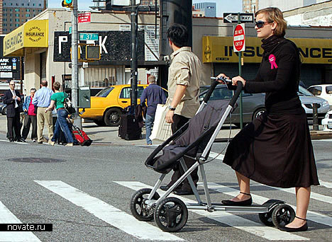 Несмотря на наличие тормозов, стоит все же вести себя аккуратнее, тем более, на дорогах. И уж ни в коем не стоит делать этого даже на небольшом каблучке, как показано на картинке. Не в них одних дело, конечно, но лучше максимально обезопасить и себя, и малыша. Вообще, интересно, как дизайнеру из компании Pixstudio такая мысль в голову пришла. Все же, чересчур эта затея опасна…